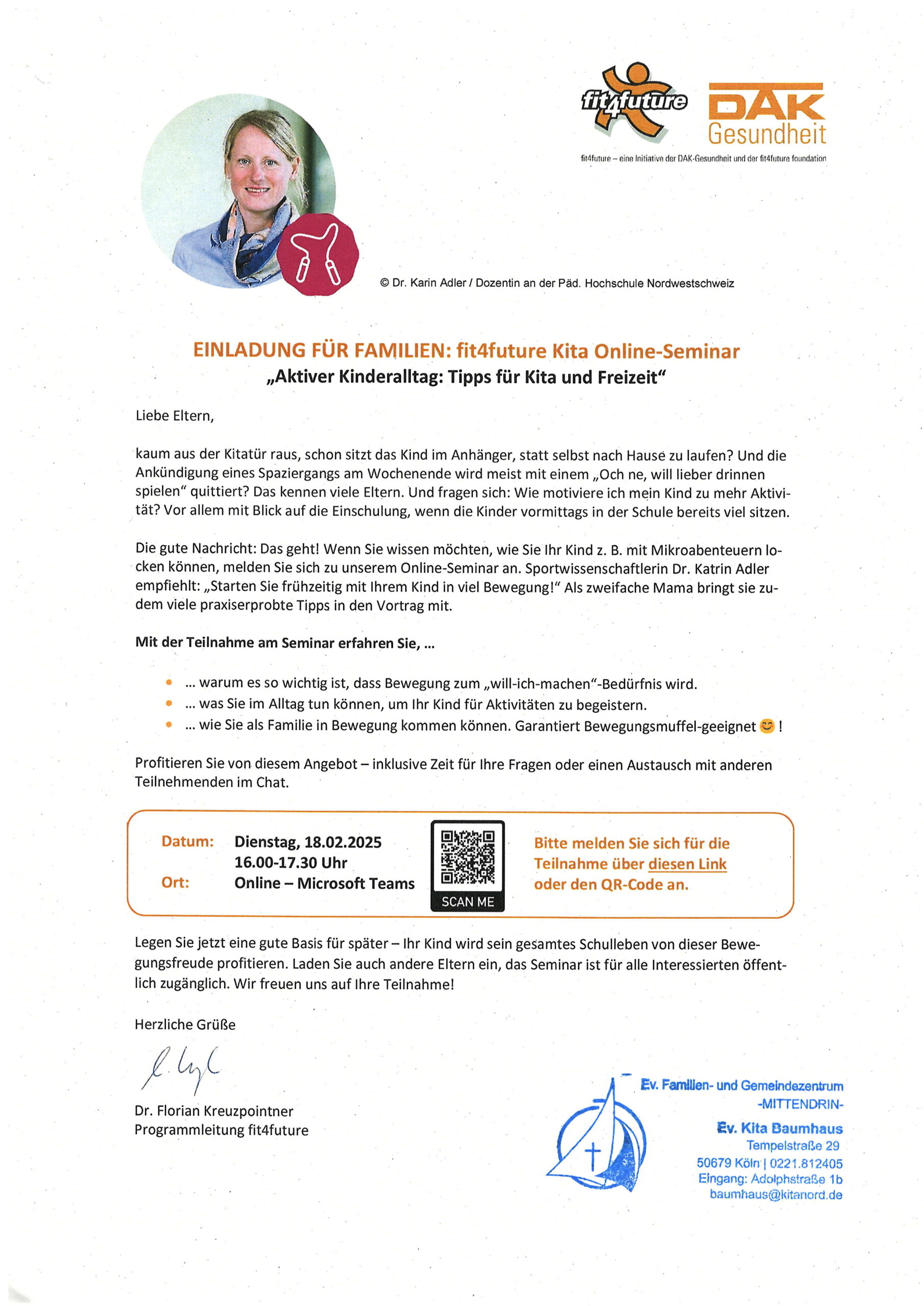 fit4future Online-Seminar „Aktiver Kinderalltag: Tipps für Kita und Freizeit“